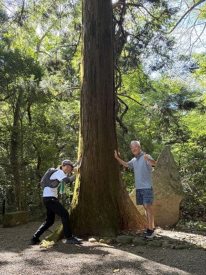 | 我々の目的地は 御神馬舎 | 定点の志波彦神社をバックに記念撮影 |