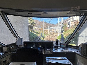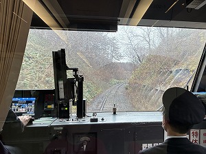 | 運転席からの展望 | 千畳敷駅で15分停車 | 冬は右側の崖が凍ります |
