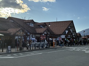 | 河口湖駅はインバウンドだらけ | 昔の富士急車両 | ホームから見た富士山 |