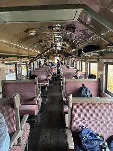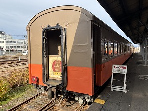 | 太宰の故郷なんで | こちらがストーブ列車 | レトロな車内 |