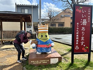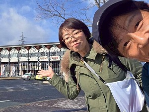 | お二人はさくらんぼ東根駅下車 | 與次郎稲荷神社を参拝 | 健脚に御利益があります! |