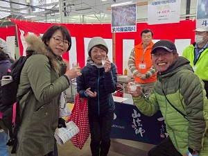 | ちょっと寒かったけどビールが美味しい♪ | スーパーおーばんで 頑張れ琴桜 | 蔵参観会場に到着! |