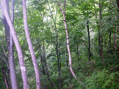 | ブナ林に心が洗われます | 鉄塔下、ここからは車道を走ります |