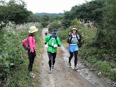 | 次はハセツネに挑戦するMakotoさん | 上り坂を快走するMorikoさん |