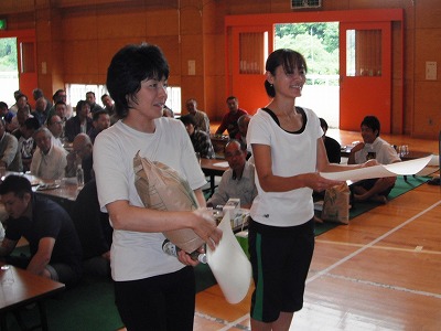 | Rikaちゃんは米5キロ×2袋をゲット!筋トレになります | なんと、やっちゃんが締めの音頭を取りました! |