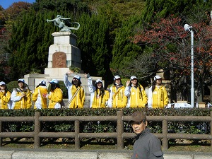 | 何の踊りなんだろう? | 35キロ地点、このコース最大の難所です | ポートタワーを右手に見ながら |