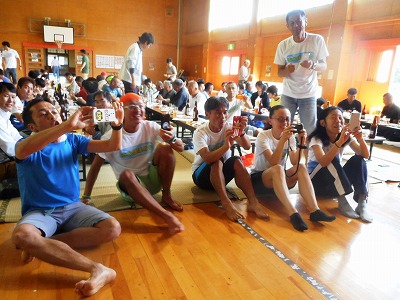 碁点温泉で汗と泥を流し、懇親会でビールを飲めば、あの苦しさが