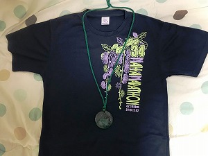 | Shimizu君は7.9キロ 37分で終了 | 仙台駅着 お疲れ様でした! | 参加賞のTシャツと完走メダル |