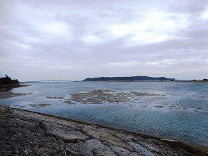 | 浜比嘉大橋と浜比嘉島 | 浜比嘉島にある綺麗なビーチ | 海の向こうに海中道路 |