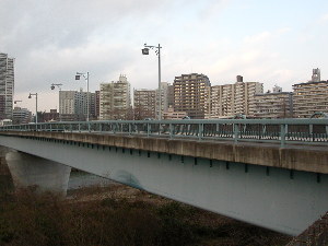 | 立体になっている仲の瀬橋 | 廃止になった西公園のプール | 歩道橋から見た仲の瀬橋 |
