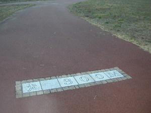 | 花壇自動車学校 | また遊歩道が途切れ、この路地に入る | 大橋に向かう遊歩道に出る |
