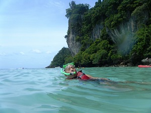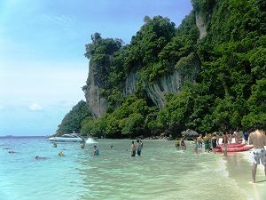 | クルーズ船で2時間、ピピ島 | ここで船を乗り換えシュノーケリング | Suzukiさんも楽しんでます |