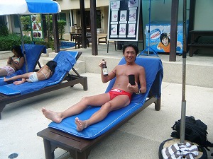 | Shimizu君くつろいでます | プールの中のバーに満悦の春夫 | 本当に楽しいツアーでした、バンコクにて |