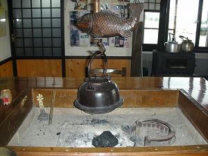 | 店の入り口 | 囲炉裏がありました | 天然物のきのこ |