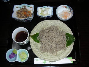 手打ちそばが食べられる。ダムの手前に「そば山彼方」と青根温泉の近くに