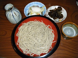 「まつや」より広い。ここの蕎麦の特徴はうすい緑色なのだが、これは清涼感を出すために