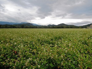 | 肘折温泉近くにあるそば圃場 | とにかく広い!! | 肘折温泉名物のループ橋 |
