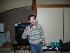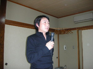 | 忘年会の始まり、会長挨拶 | 乾杯の音頭はKomadukaさん | 早く飲みたいな〜 |