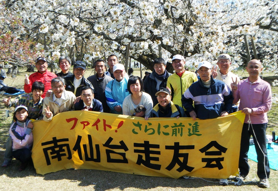 (平成25年4月28日 三神峯公園 17名参加) ここ数年、走友会の花見は榴ヶ岡公園で行っていましたが今年は三神峯公園で行いました。 三神峯公園ははしだれ桜や八重桜もありゴールデンウィークまで花見を楽しむことができます。 この日は快晴ということもあり他にも多くの花見客がおり、楽しいひと時を過ごすことができました。