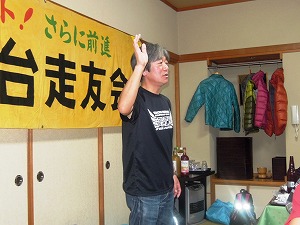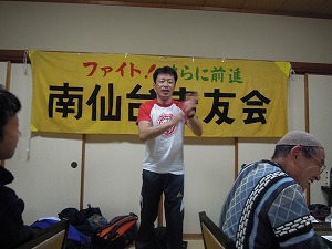 | 長老の音頭で乾ぱ〜い! | おんちゃんがリレーマラソンの報告 | 県駅伝の報告もありました |