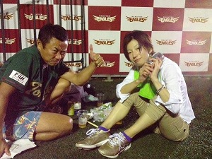 | まさに夏の終わりですね | Yayoiさんが席を変えて乱入 | 我々、大の楽天ファンです! |