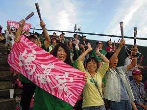 | 右からKimiさん、Kaoriさん | やっぱ、レフトスタンドは熱くなります | 7回裏の風船飛ばし |