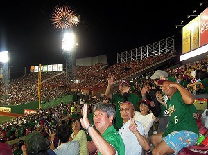 | 夏スタはグリーンの風船です | ヤッター!サヨナラ勝ちです!! | 最後まで観戦して良かったね |