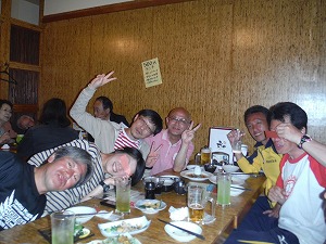 | スタンドにも多くの応援の方が | 打ち上げは「さかなや道場」で | 会長が乾杯の音頭 乾杯!! |
