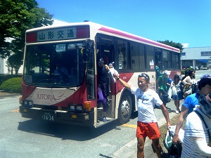 | 装甲車、かっこいいな〜 | 今回は山形カシオからシャトルバスで | 天童のゆぴあに移動して「乾杯!」 |