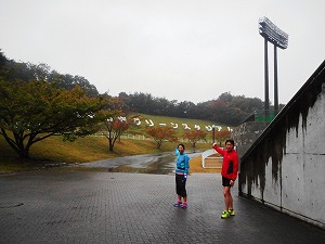 | 会長がダウンしたのでお開きです(笑) | 翌朝、雨の中ここを走りました! | プロ野球も開催される立派な球場 |