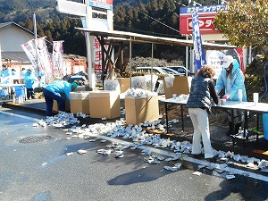| 給水も大混雑です(T_T) | 御嶽駅にはたくさんの応援の方が | 撤収中の往路側の給水点 |