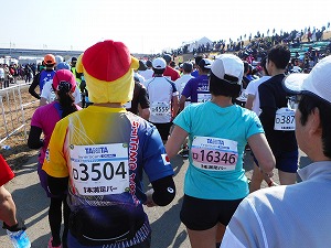 ファンランすることに。号砲が鳴ってスタートラインまで3分ぐらい。その後も