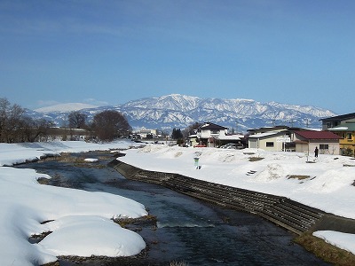 | 前日、賀茂神社までジョグ 自宅から往復で21キロ | 右側の雪を被った山が黒伏山 |
