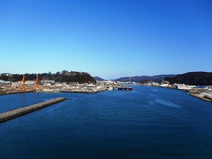 | 菖蒲田浜 | 倒れたままの菖蒲田漁港完成記念碑 |