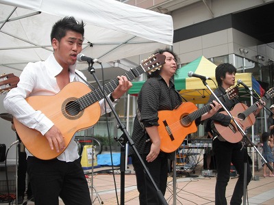 | 暑かったので給水所は大盛況 | サンタクロースとスーツ姿のパフォーマンス |