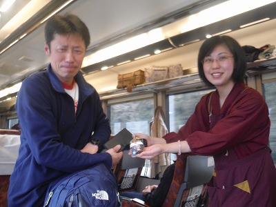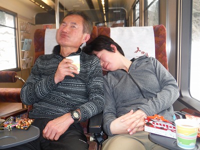 | 吟醸酒を熱燗で | 帰りの電車でまた飲んでます(>_<) |
