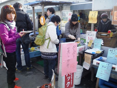 | 復興市場 | ぷりぷりの蒸し牡蠣で〜す♪ |