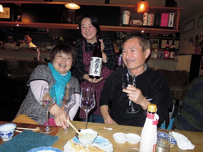 | 厨房に立つ主のEguchiさんと姉弟子 | 叙勲記念の盃で |