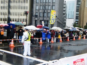 30秒ぐらいでゆっくり走った。10キロ地点の日比谷の交差点では関東支部
