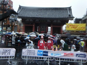 | 中間点の日比谷で仲間に応援してもらう | 銀座を走れるなんて夢のようです! | 浅草、雷門前にはたくさんの応援の方が |