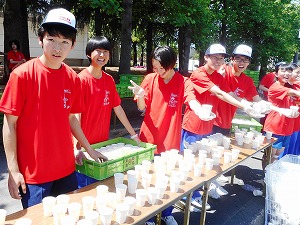 | 小学生の応援が嬉しい(^O^) | 春夫は全員とハイタッチ | 暑かったので給水はしっかりと |