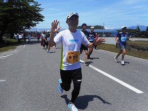 | 牛さんは絶対暑いと思う(>_<) | 金哲彦さんだ! | 弟子3号と並走してくれました♪ |