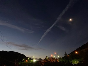 | 42.1キロ地点 笹谷IC | 目指すは笹谷峠 | 東の空に飛行機雲と月 |