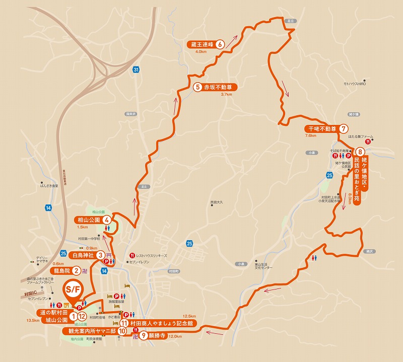 | 観光案内所ヤマニ邸 | 村田城址 城山公園 | 道の駅村田 ゴール!! |