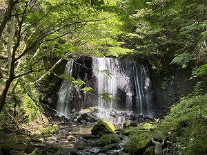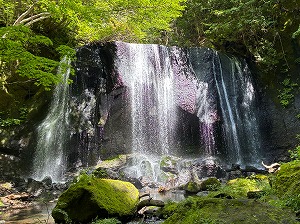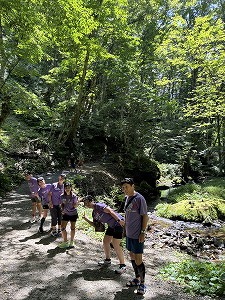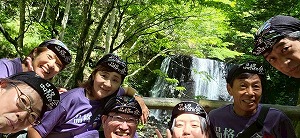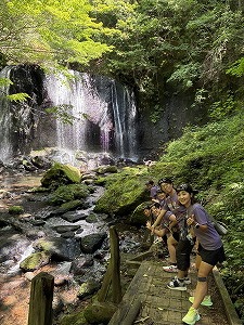 | 滝まで渓谷沿いを歩いて | 集合写真 | 滝の近くまで行ってマイナスイオン |