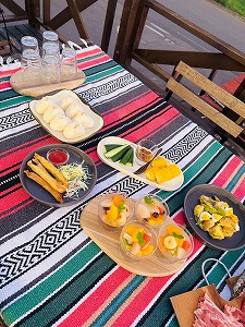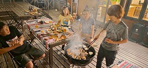 | 夕食はBBQ | 副菜&デザート | さあ、どんどん焼こう! |