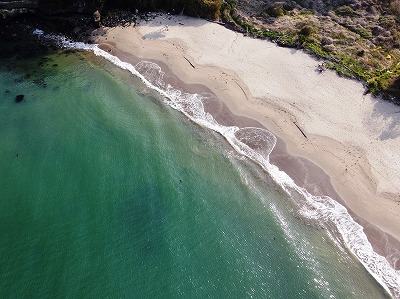 | まずは慰霊碑でお参りしてから | ドローンを飛ばして上空からの荒浜地区 |