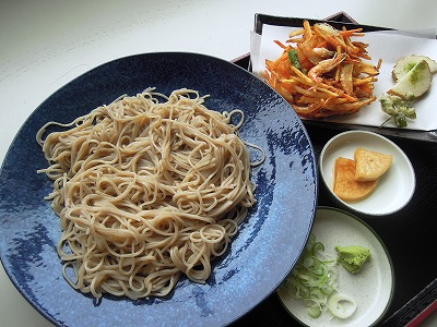 | スマホで撮影中のNiheiさん | 〆は味噌おにぎり(250円)&山菜そば(600円) |