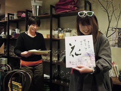| Mihoさんから色紙贈呈 | にゃんにゃんするNiheiさん(笑) |