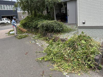 | 早朝、集会所の草刈り |